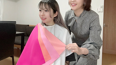 パーソナルカラー診断:布を当てながら診断していきます。
